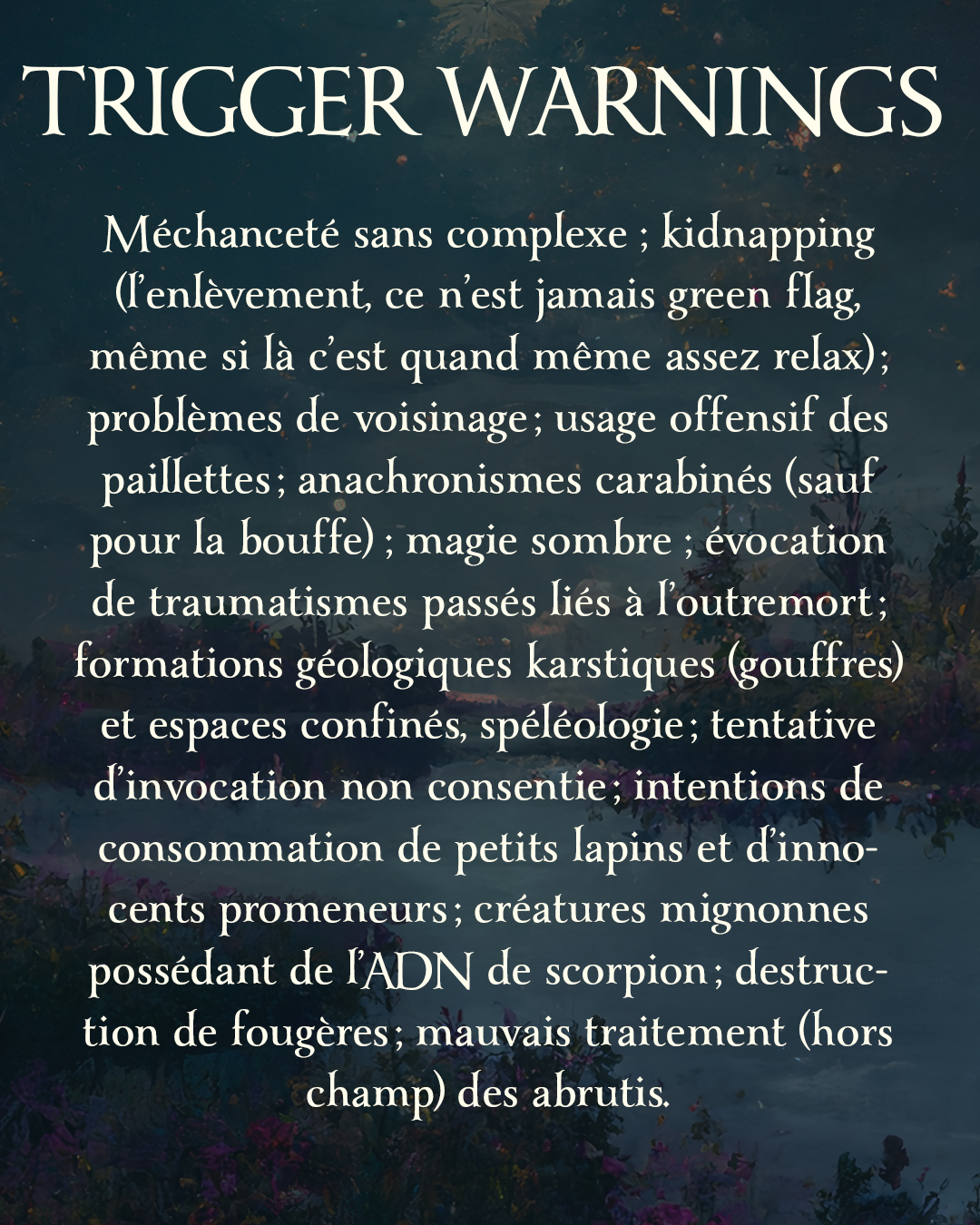 Cette nouvelle de cozy fantasy dans l’univers du Périgord rose est une doudoudark bromance qui ne traumatisera absolument personne. Elle a été écrite sur mesure pour ses personnages principaux.